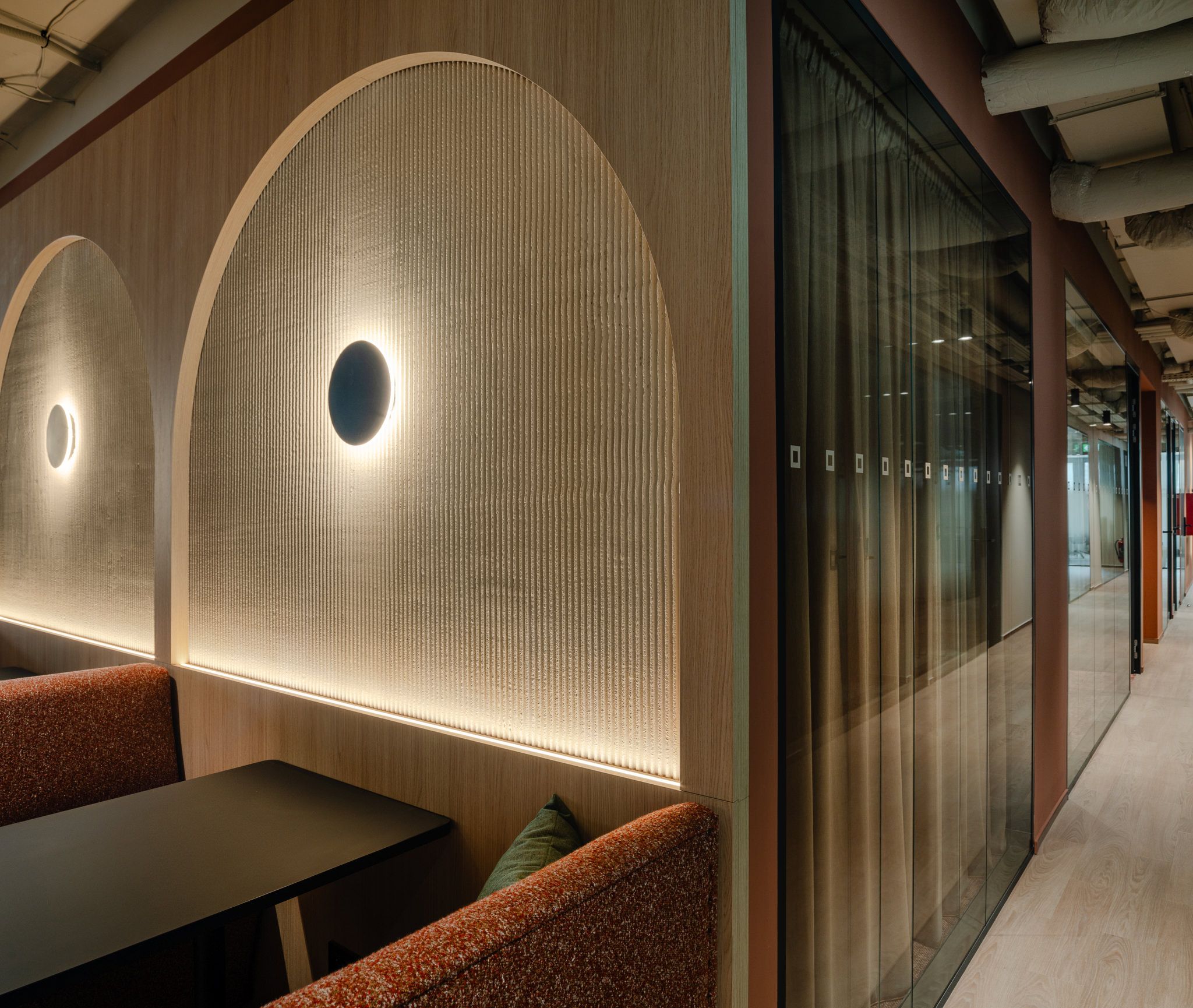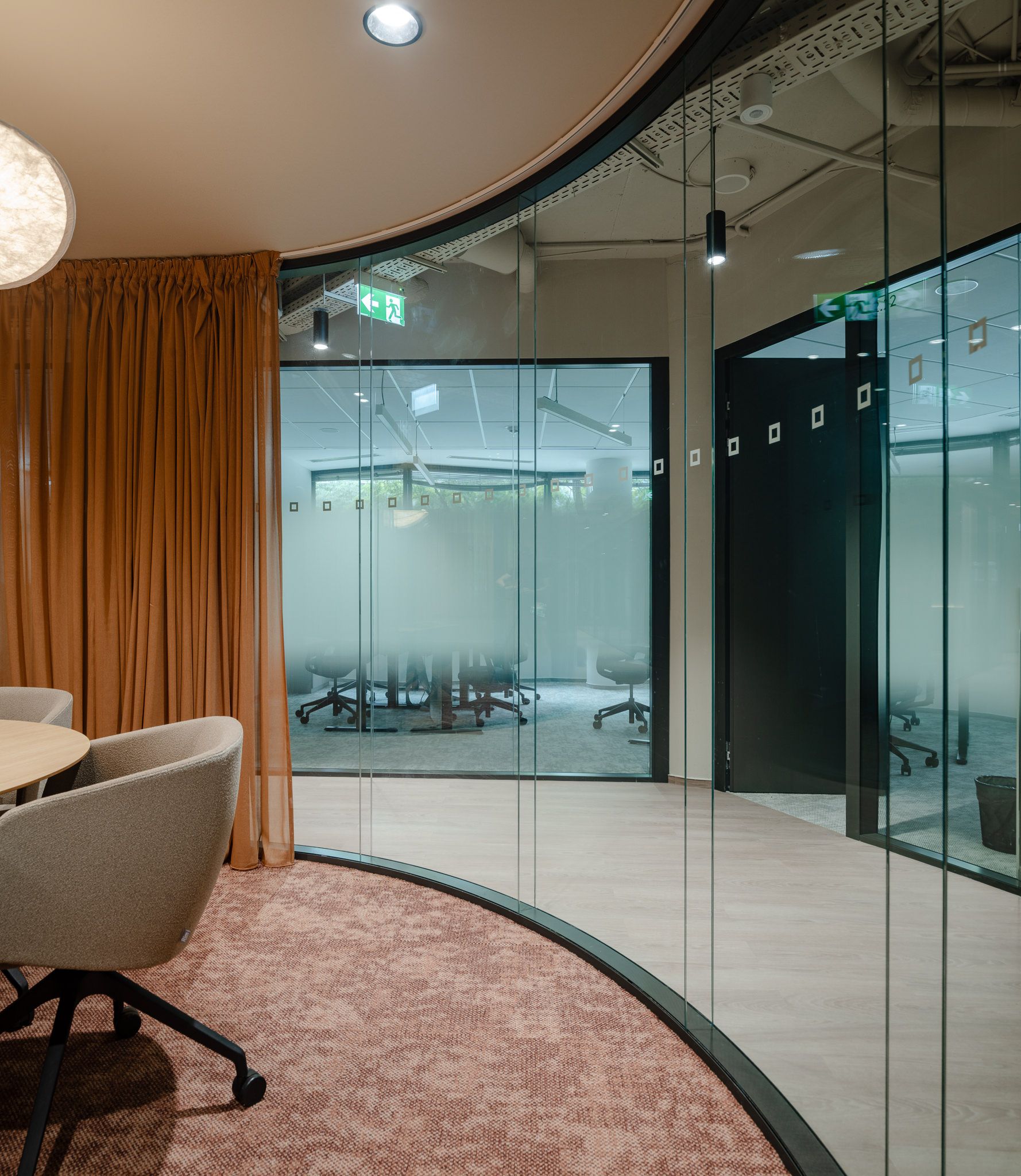 Většina realizace je provedena v našem systému interiérových příček MiltDesign 2.0, který nabízí výborné akustické vlastnosti – klíčový prvek pro moderní open space kanceláře. Kvalitní akustika znamená lepší koncentraci, vyšší produktivitu a spokojenější zaměstnance.