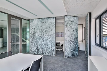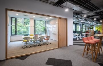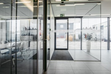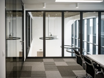 Prosklené stěny MILT spojují eleganci s funkčností, umožňují přirozený průtok světla a vytvářejí otevřený prostor, který zároveň poskytuje potřebnou izolaci a soukromí.