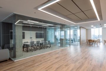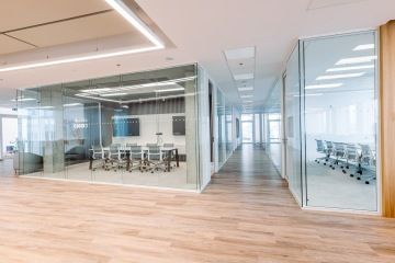 Nový interiér společnosti Cisco. Bezrámové příčky z dvojskla MiltDesign elegantně rozdělily a odhlučnily jednotlivé vnitřní prostory, zároveň je však vizuálně neoddělily od jejich okolí.
