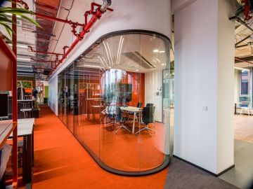 Živé obloukové tvary skleněných dělících stěn není žádný problém. DESIGN, VÝVOJ & KVALITA skleněných přestavitelných dělících příček MiltDesign.