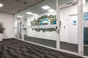 Dynamická společnost uvítá variabilní prostorová řešení. Dělící příčky MiltDesign a GlassTech je snadné uzpůsobit budoucím změnám. Vyrobil a instaloval MILT ve společnosti KIWI.COM