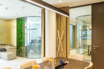 Nová pobočka v Praze pro investičních společnost Mercurius Pro. Krásné oblé tvary dělících příček ve dvojsklu vytvořily z obyčejného prostoru luxusní kanceláře.