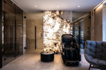 Instalovali jsme dělící skleněné stěny s dveřmi v systému MiltDesign 2.0, které prosvětlují a zvelebují vstupní halu. Pro wellness zónu a koupelny jsme zvolili prosklené systémy GlassTech, které kombinují stylový vzhled, funkčnost a bezpečnost.