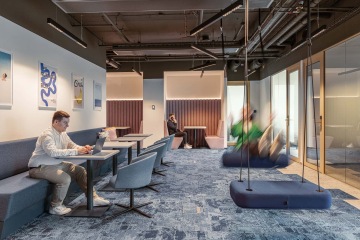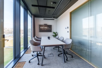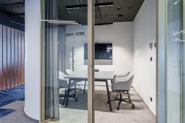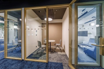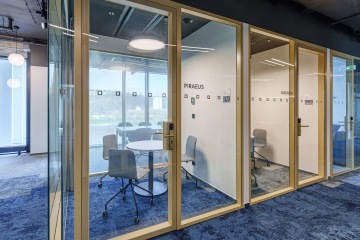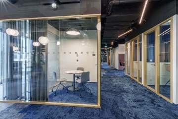 PORT 7, další výjimečné coworkingové centrum na Praze 7. Výroba a instalace prosklených interiérových příček v sytému MiltDesign 2.0 a GlassTech ve zlatém provedení. Realizace protipožárních stěn FireBo.