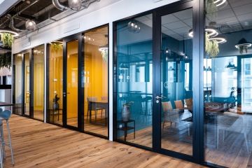 Díky našemu špičkovému systému interiérových příček MilTech, jsme dokázali prostor efektivně rozdělit na několik různě velkých kanceláří a zasedacích místností při zachování akustické pohody. Instalace posuvných dveří v menších kancelářích nám ušetřila drahocenný prostor, zatímco skryté dveřní panty přispěly k uhlazenému a modernímu designu dělících stěn.